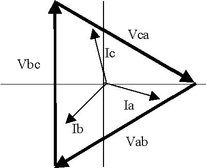 在許多三角形接法中,三角形有一個角接地,也就是說,有一相的相-地電壓等于零,另兩相的